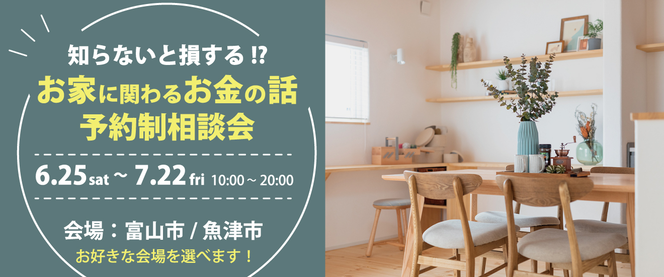 場所:西荒屋展示場(富山市西荒屋248-3)、みらーれ展示場(魚津市住吉567-1)