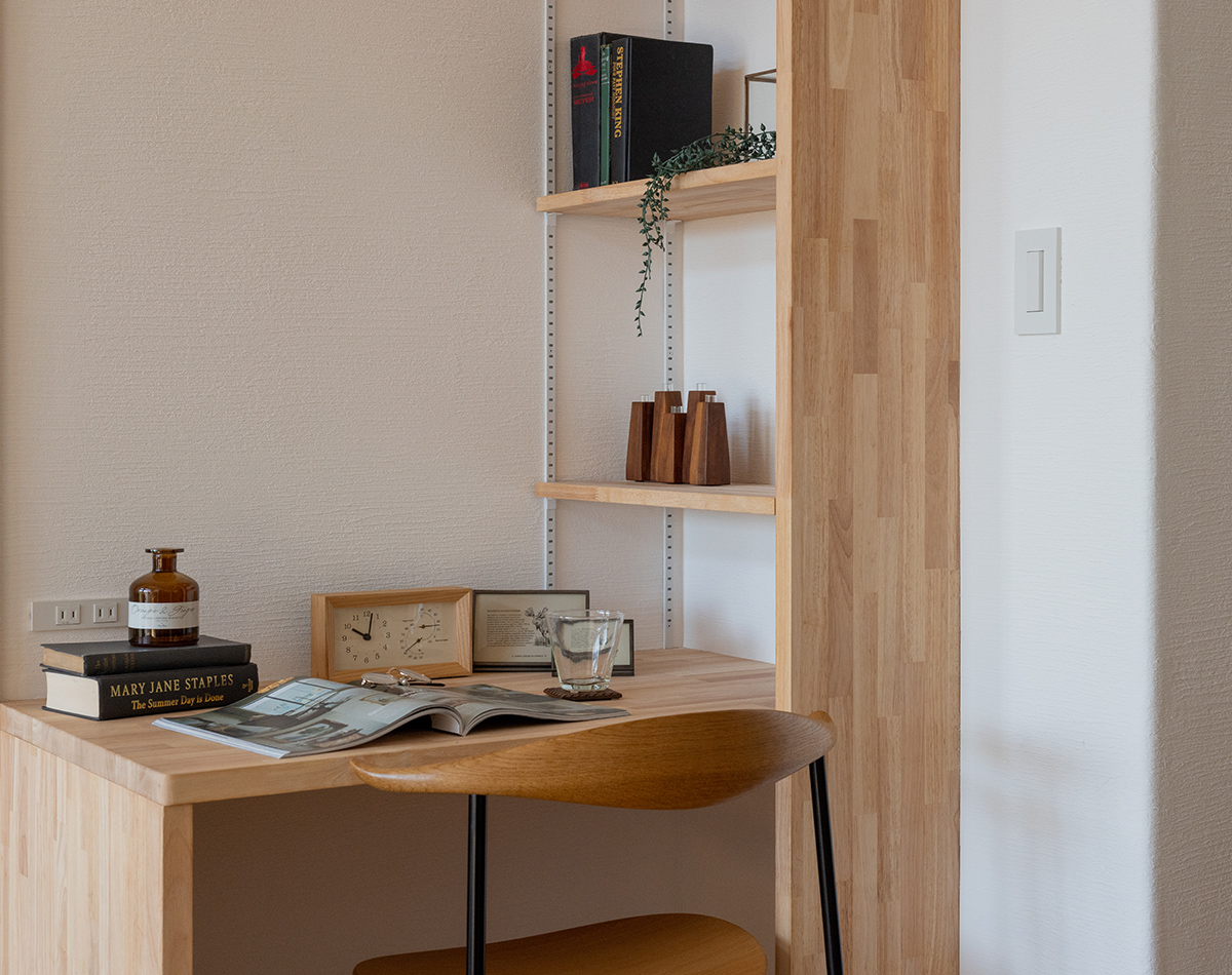 おこもり感のある書斎スペースは本を読んだり、趣味に没頭したりとプライベートな時間を楽しめます。