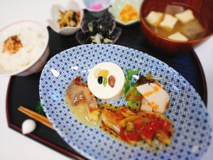 ・メイン 豚ヒレ肉の詰め物パン粉焼き&豆腐と魚の詰め物カレー風味