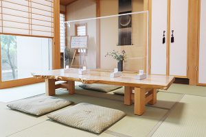 ・打合せスペースに飛沫防止用のアクリル板を設置しています。