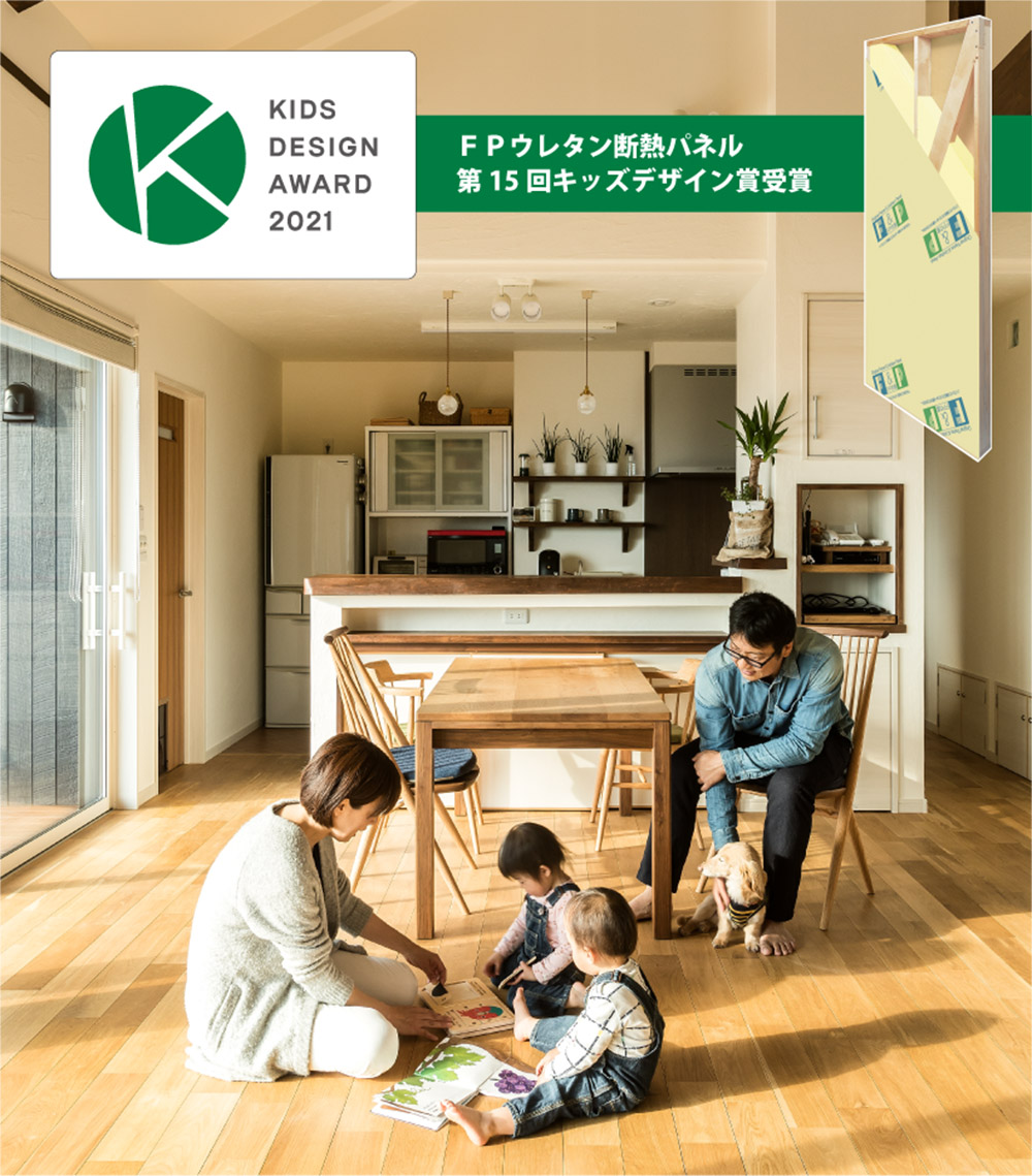 山下ホームの断熱標準仕様「FPウレタン断熱パネル」が、第15回キッズデザイン賞(主催:特定非営利活動法人キッズデザイン協議会)を受賞しました。