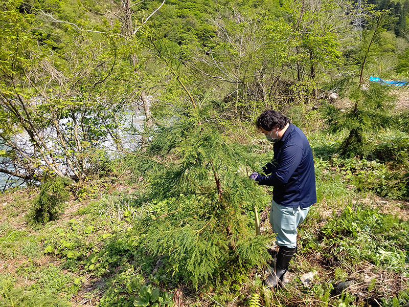 先日、雪が解けたので久しぶりに富山県魚津市の片貝川上流にて森づくり活動を行なってきました。
