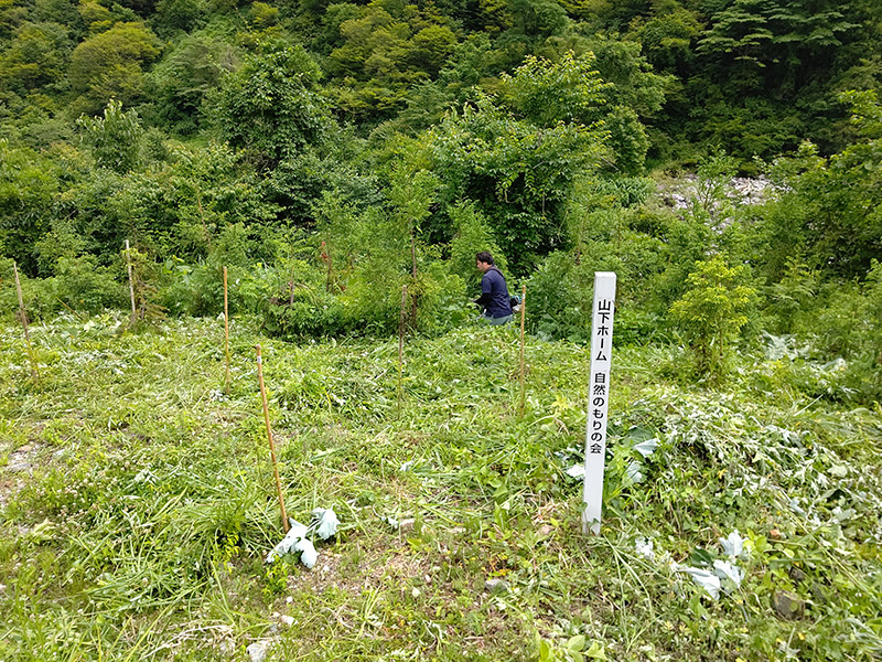 一緒に森づくり活動を行っている職心会メンバーを募りたいところですが、コロナ禍のためやむを得ず社員2名で行いました。