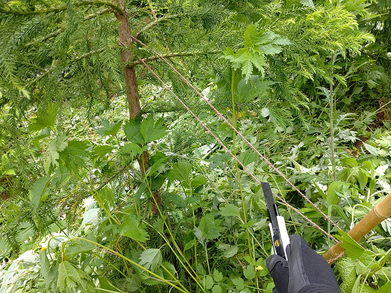 縄をつけっぱなしにすると木の表面に食い込み悪い影響がある場合があるため、自立できた木は早めに縄を切る必要があります。