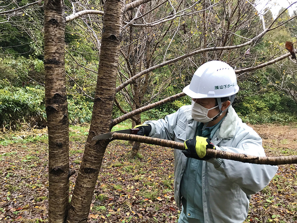 約10年前に植樹した桜の木の枝打ち作業を行いました。
