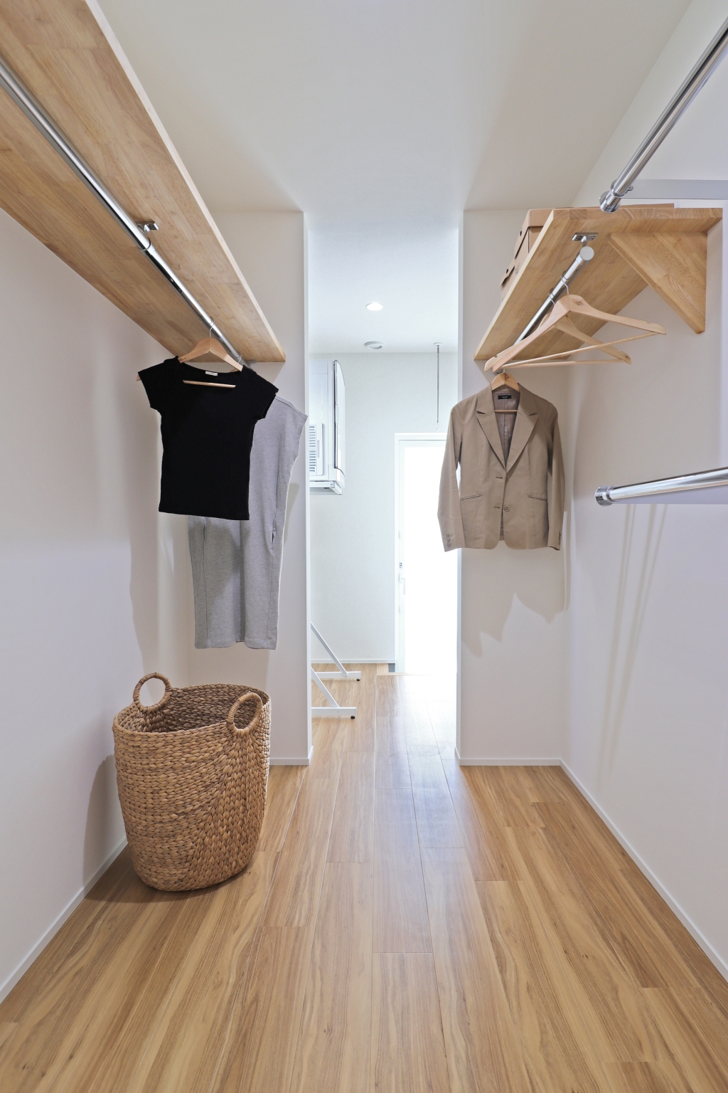 ランドリールームまでウォークインクローゼットを通って一直線につながっており、洗う・干す・しまうまでが最短距離でできる機能的な設計となっています。