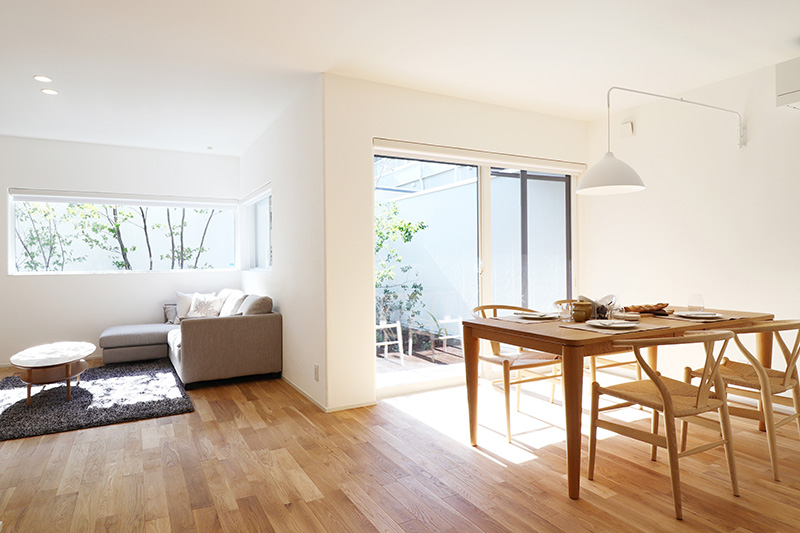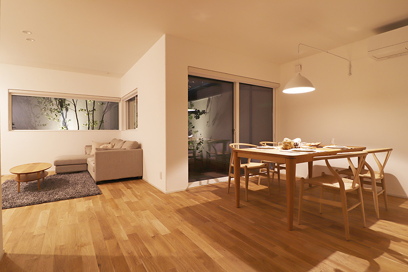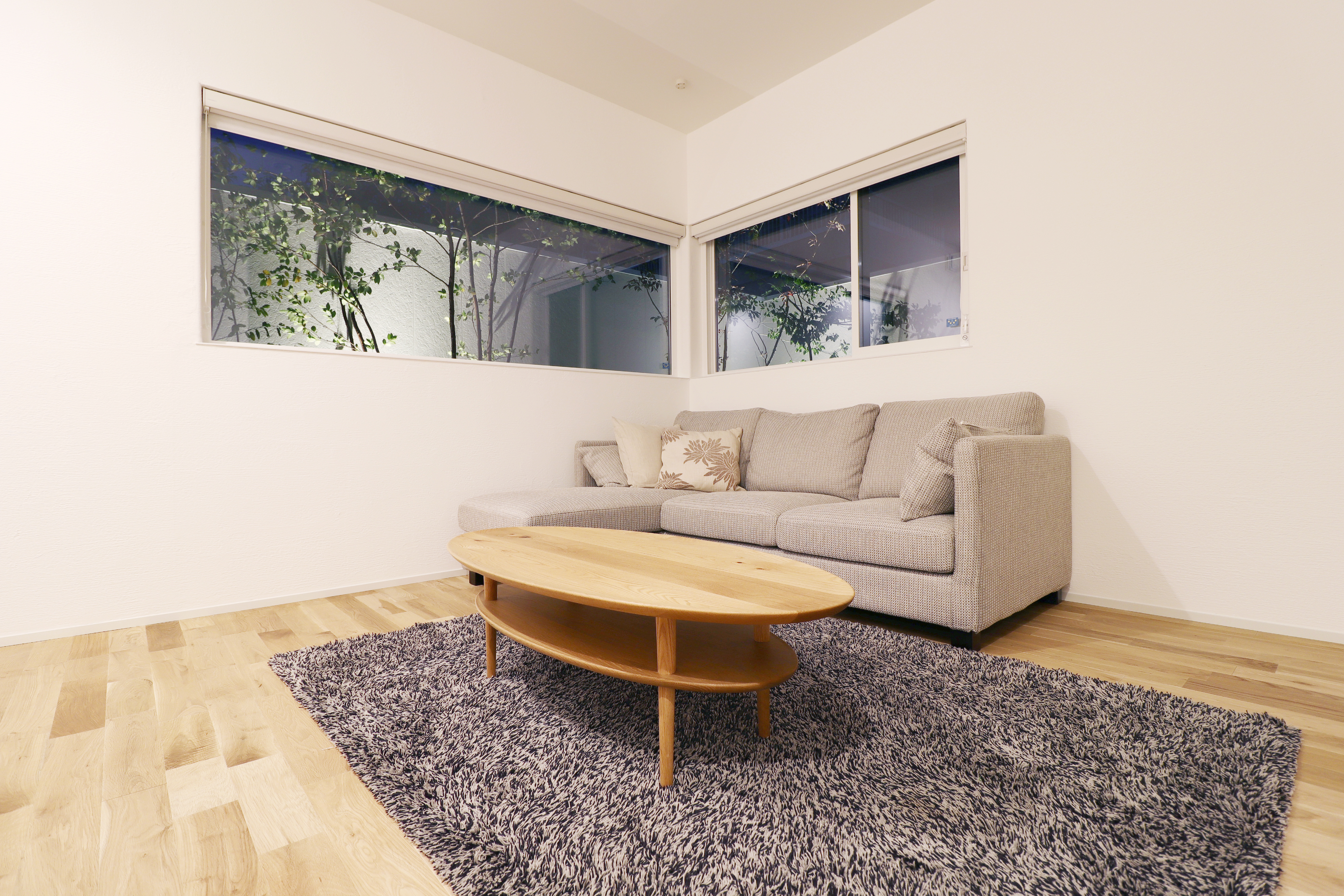 視線を気にすることなく、中庭からの光・風を取り入れ居心地の良い空間を実現しました。