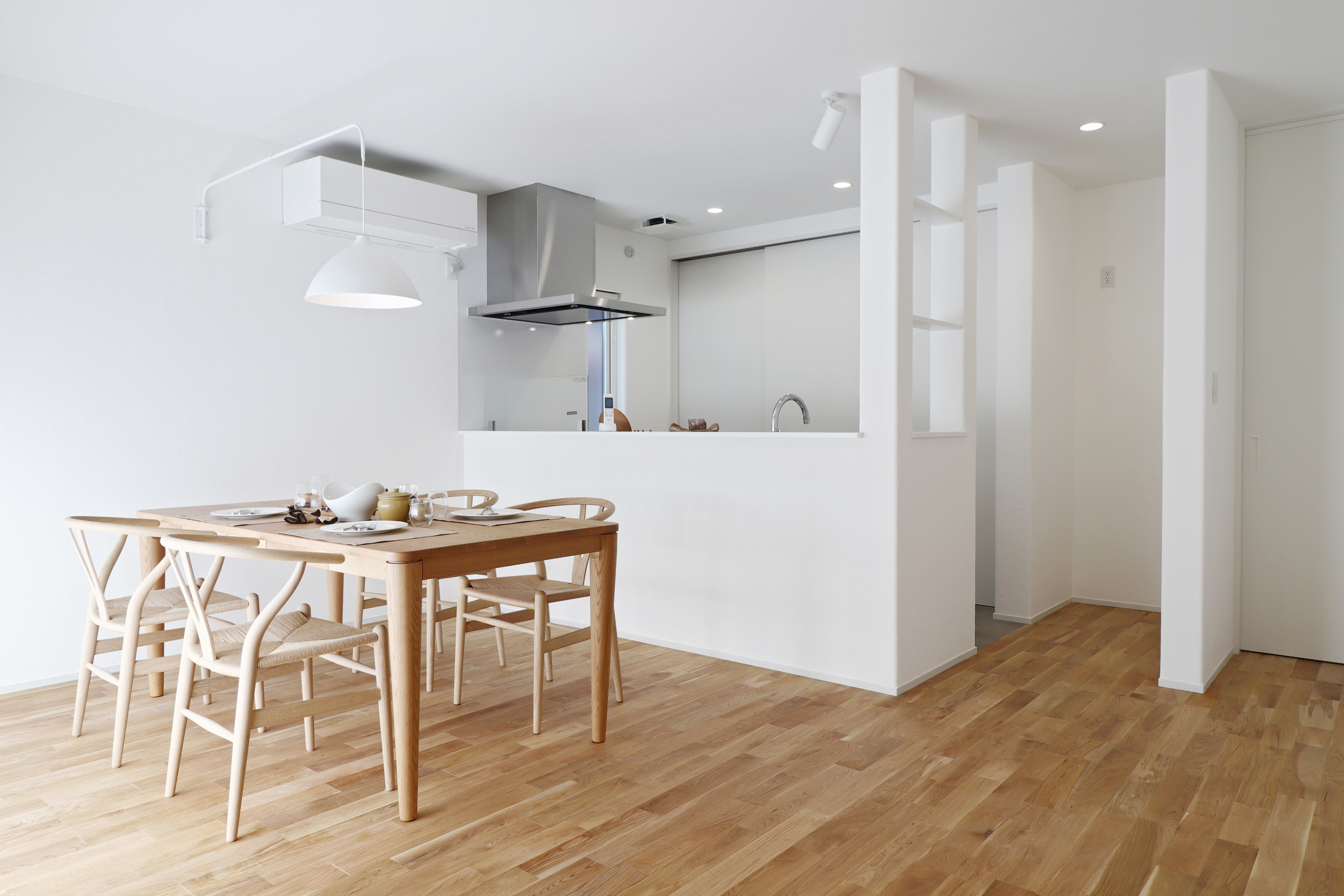 白壁に自然の緑が映える、おしゃれなダイニングキッチンは生活の質を高めてくれます。