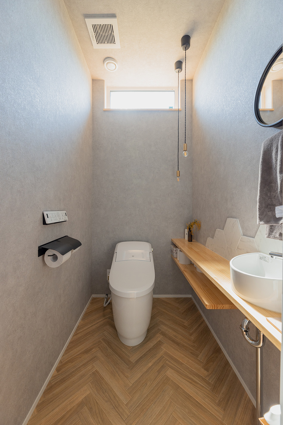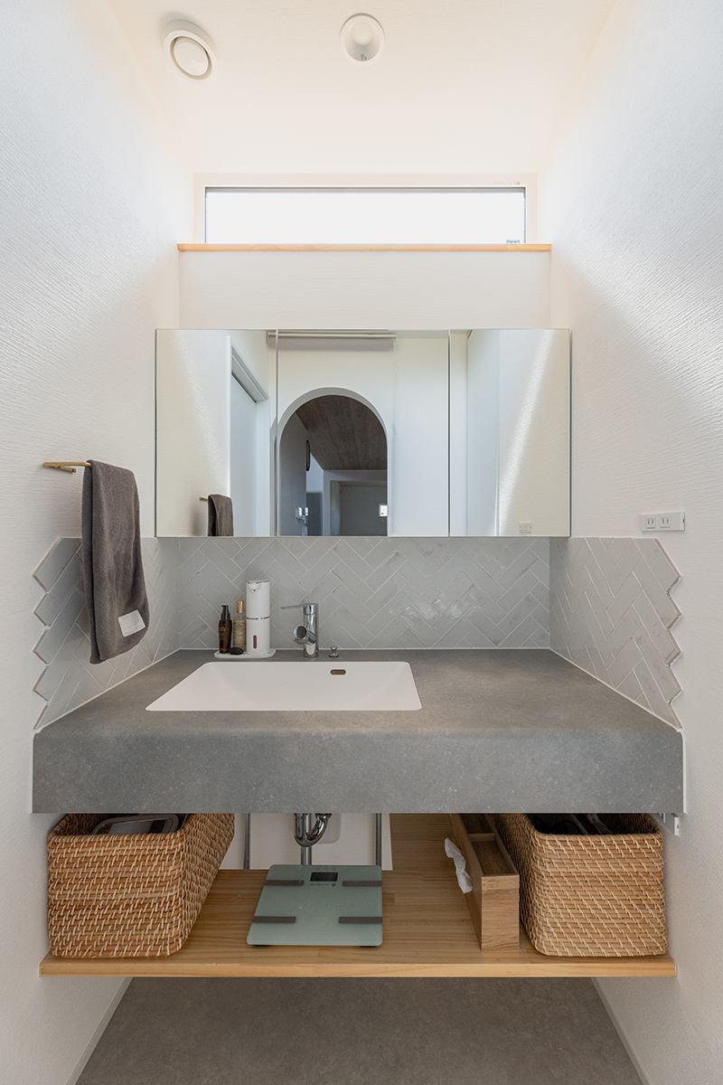 洗面やトイレのタイルなど、こだわりの造作家具が随所に散りばめられた住まいは、「どこにいても私たちの『好き』が視界に入るので、家にいるだけで楽しくなります」と奥様は嬉しそうに話します。