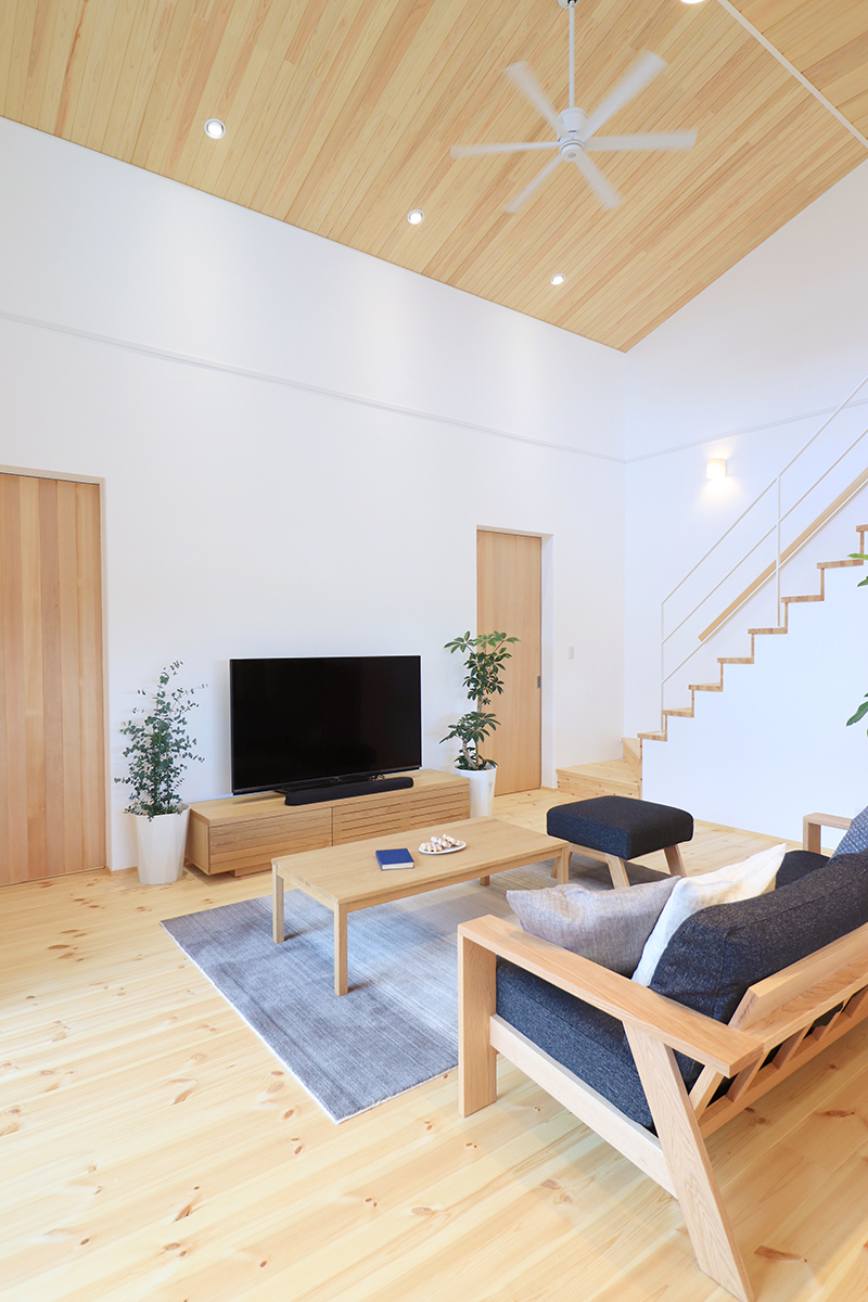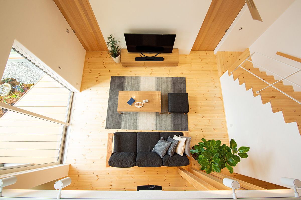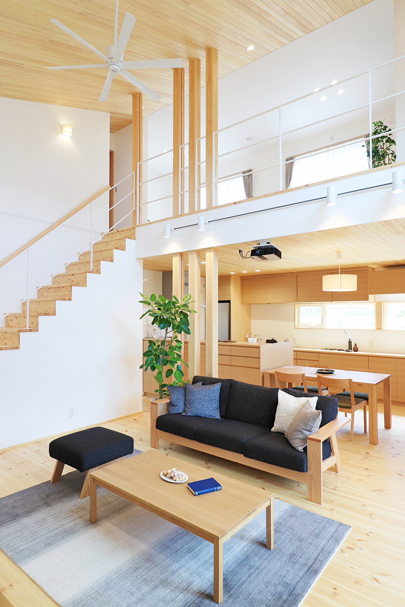 生活の中でリビングを通りやすい動線になっているので、家族の気配を感じやすい温かみのある住まいです。