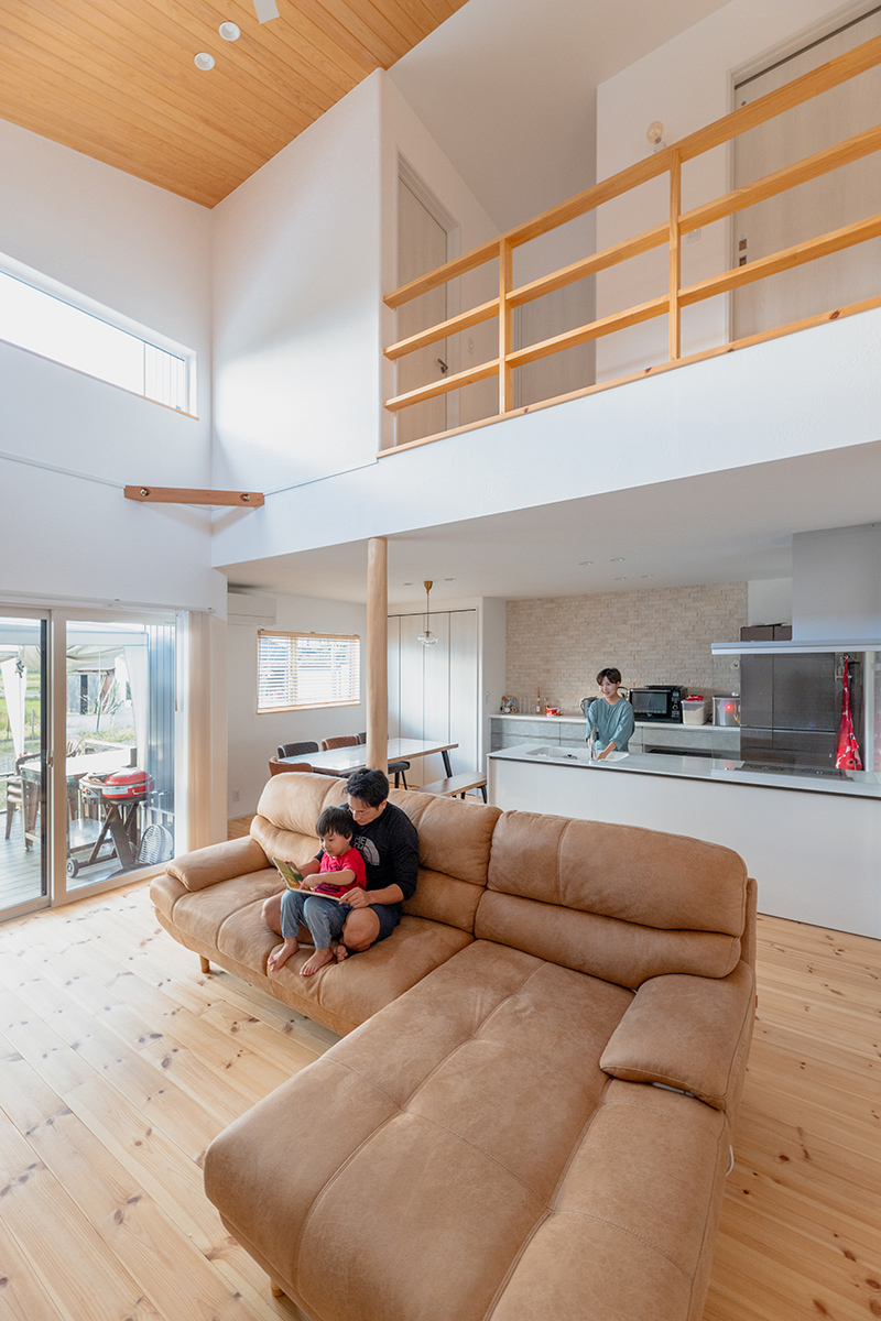 「勾配天井で大空間のリビングですが、1年を通して快適です。山下ホームの担当者さんが説明してくれていた通りの高い断熱性能で、冬でもあったか。依頼先に選んでよかったと実感しています。」