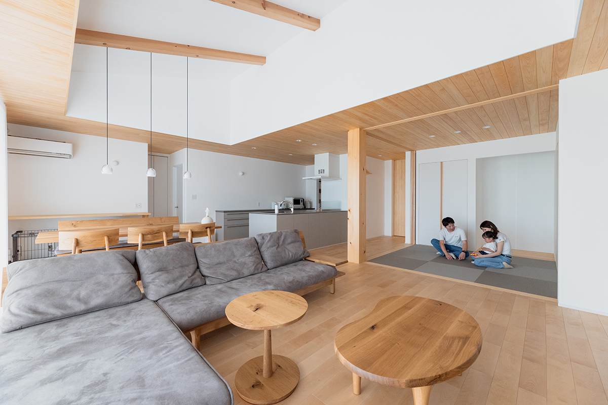ゆったりとしたLDKに続く畳スペースは、家族がくつろぐための大切な場所。