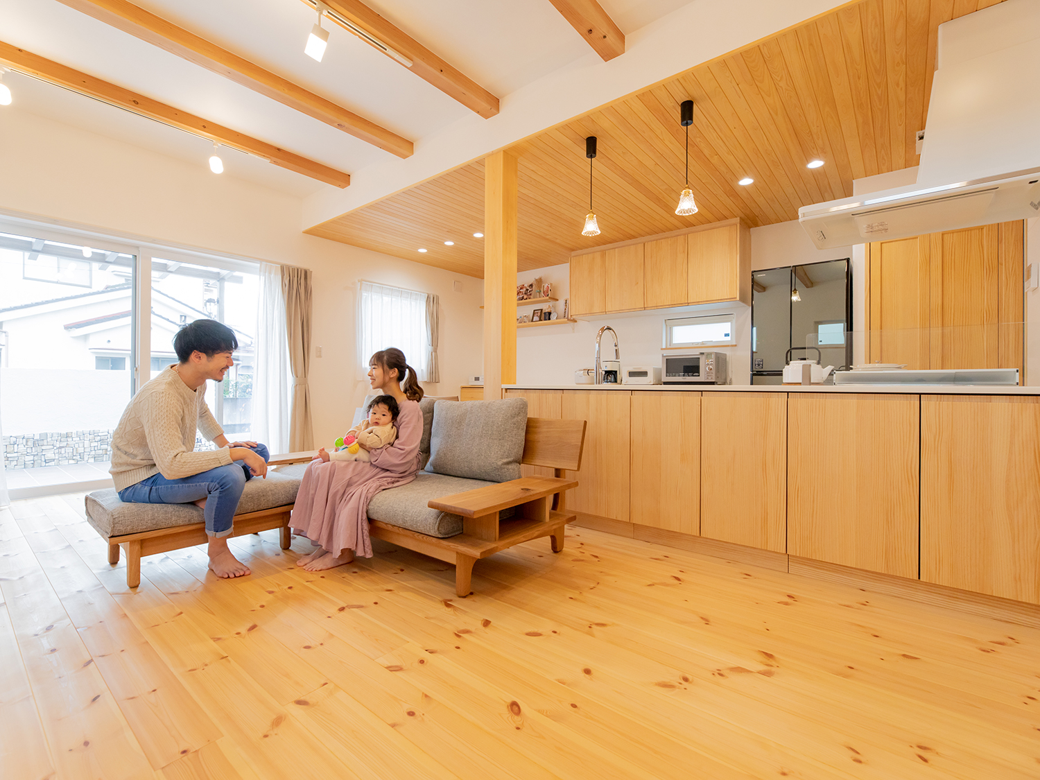 山下ホームでは床・壁・天井などに無添加素材を使用していますので人体に有害な化学物質の心配なし。更にはそれを証明するために全棟で環境測定を行い数値で評価しています。