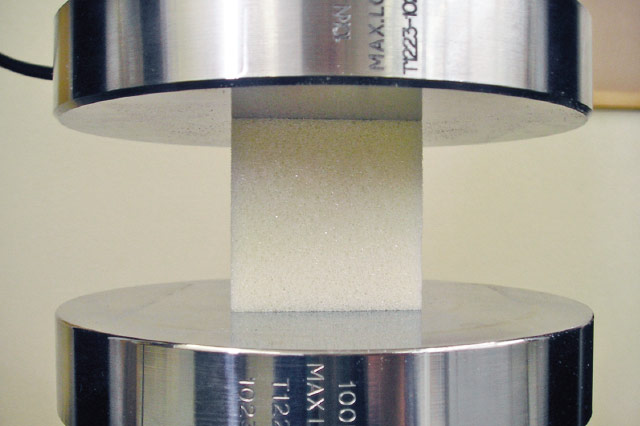 吸水性が極めて低いため経年劣化が少ないFPウレタン断熱パネル。 1996年に建てられた「FPの家」のモデルハウスから取り出した硬質ウレタンの圧縮強度測定を行った結果、建築時とほぼ変わらず経年劣化が少ないことが実証されています。